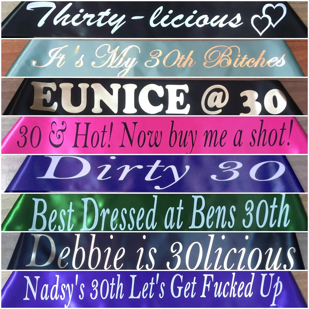 Personalised Party Sash 30th Birthday Any Wording Any Name 20 Colours Ebay