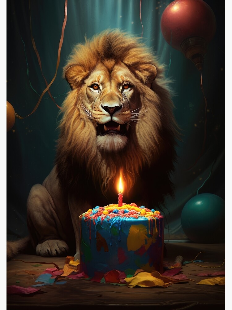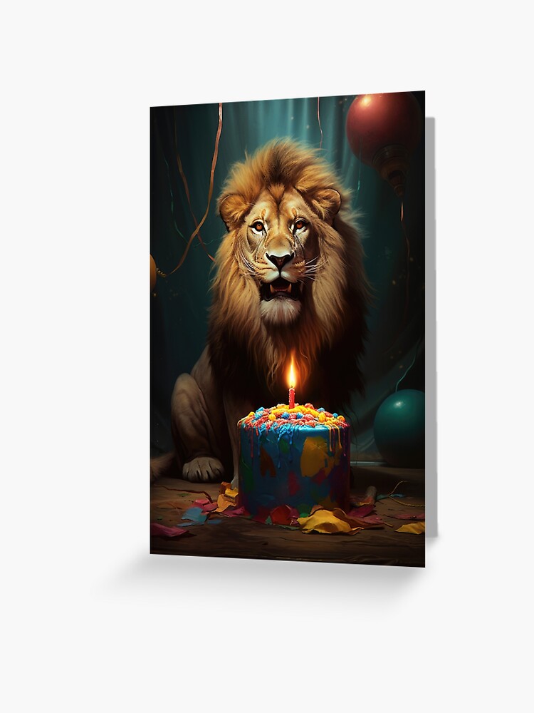 Mighty Lion With Birthday Cake Greeting Card For Sale By Oddcorro Redbubble