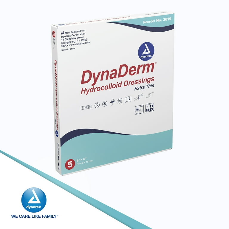 Dynarex Dynaderm Hydrocolloid Dressings Sterile Moist Bandages Used For All Kinds Of Wounds 6 X 6 X Thin Latex Free Peel Down Patches 1 Box Of 5 Dressings Walmart Com